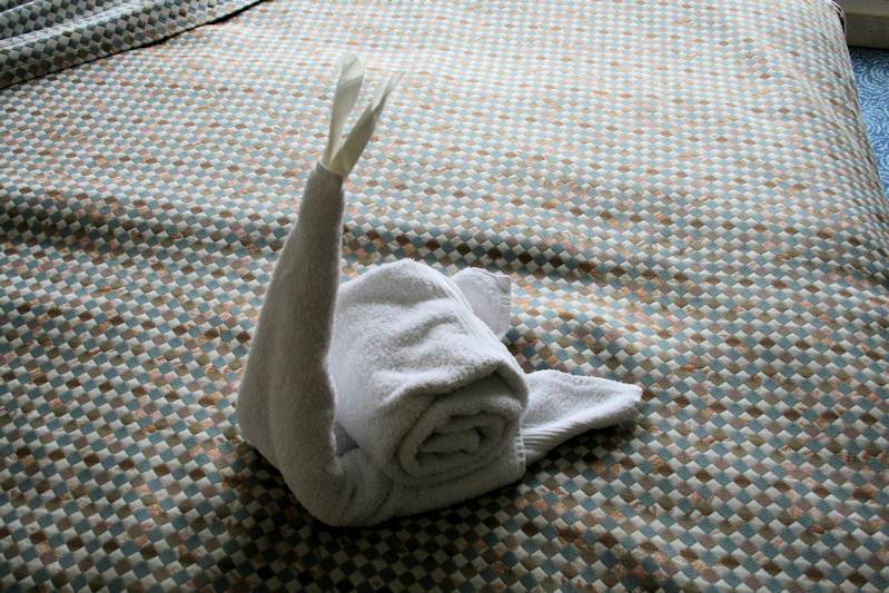 Towelling snail on the bed.